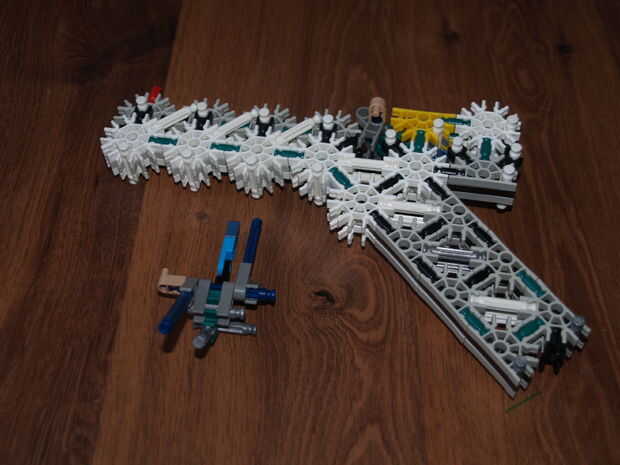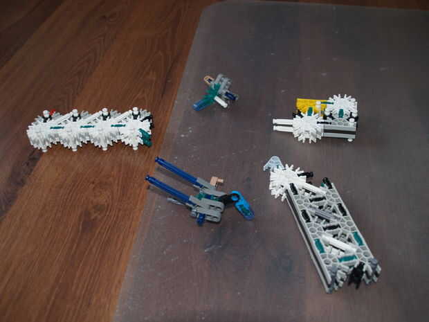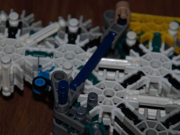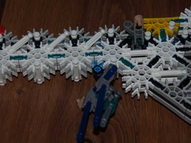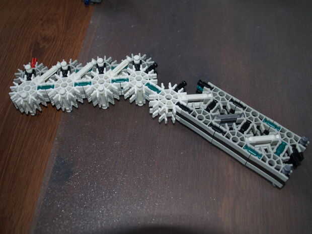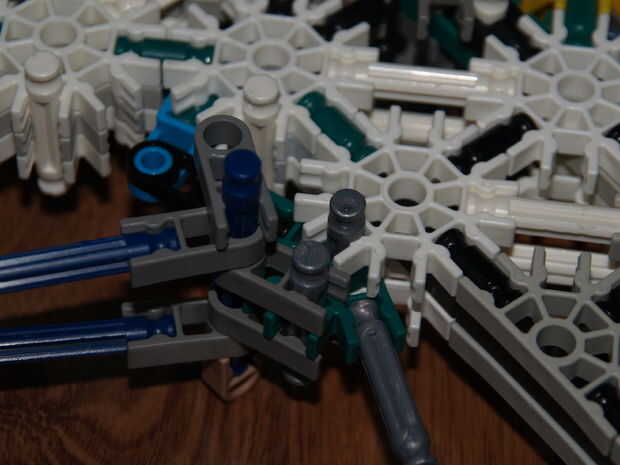 11: conectar estas barras azules con los conectores gris oscuro de parte de gatillo 2