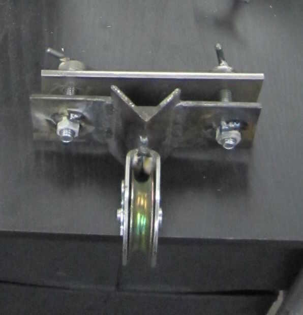 Por último, usted necesita modificar y su polea a la parte de soldadura. Use una sierra de cinta horizontal para cortar el ojo-el agujero de la polea, esto también creará una nueva superficie para la soldadura a nuestra Asamblea de anclaje.