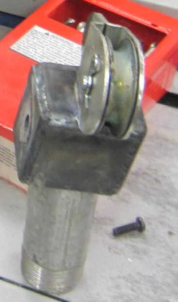 Te recomiendo perforar primero. En una placa, prueba de ajuste la polea restantes en la parte superior por lo que se extiende sobre el borde de un lado. Esto garantizará que la cuerda no roce contra el borde. En la parte inferior de la polea de la marca donde se necesita un agujero. Quitar un montón de material para que la cuerda no puede frotar contra las paredes del agujero. Sólo asegúrese de que queda metal a la izquierda para que la polea puede soldar con autógena más adelante.