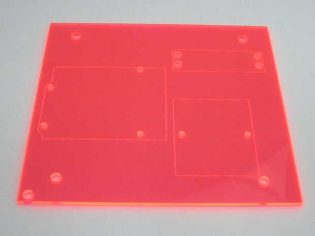 Para los que no tienen un cortador láser: usted puede usar una sierra y un taladro para cortar el acrílico. La única parte delicada sería el diseño en el nivel superior que se encuentra el lector de RFID. Si estás haciendo esto sin un cortador láser, recomendaría que perforar varios agujeros grandes en los recortes de la tarta sería. Tendría el mismo efecto y podría verse bastante bien.
