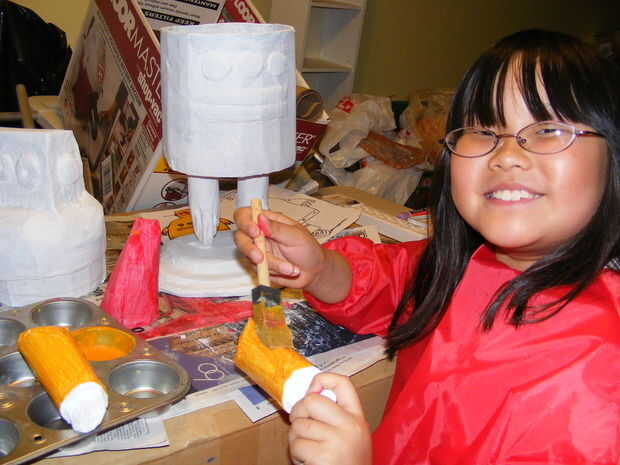 Cortar varias capas de diversas formas de cartón para crear su estatua de base. Laminado de ocho capas para crear una altura adecuada.