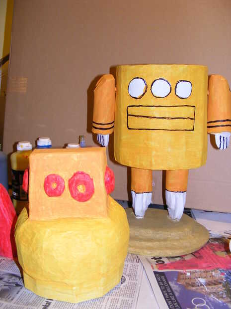 Conecte su Robot a la base mediante la inserción de cable rígido o clavijas a través de la base por los ensambles de las patas. Esto proporcionará un soporte "invisible" para estar en posición vertical el Robot. Puede utilizar clavijas finas o incluso de repuesto lápices empujadas la parte inferior. Pegamento en su lugar.