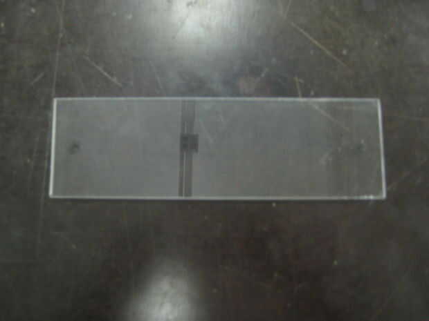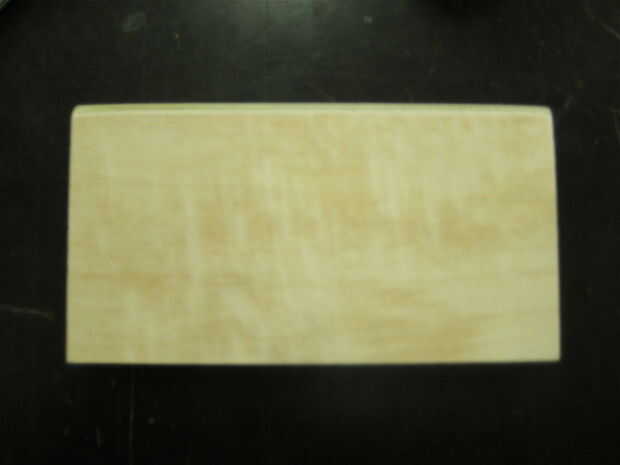 Usando una sierra de cinta, comienza por cortar una hoja de acrílico de 1/8 pulgadas hasta una pieza que es 2 x 7.25 pulgadas y un pedazo de madera contrachapada de 3/4 pulgada hasta 4 x 7 pulgadas.
