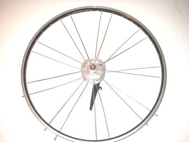 Usé la bicicleta real como mi soporte de centrado para la rueda delantera.