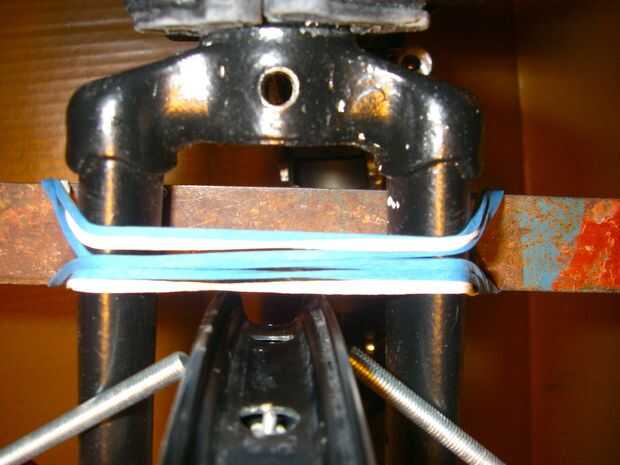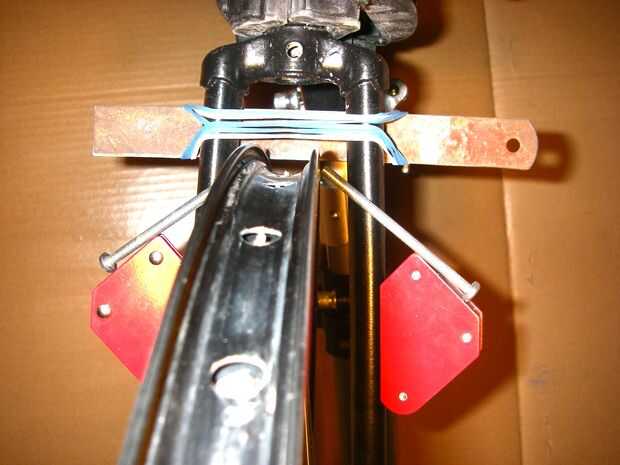 Una regla con una banda elástica mantiene la vertical centrado en jaque; Utilicé dos imanes y los pernos para el centrado lateral, pero ataduras de cremallera o pedacitos de cinta funcionaría igualmente bien.