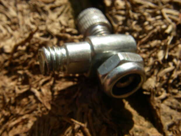 Porque no estoy usando el cable correcto (£2), no tengo los accesorios que lo acompaña; Tengo alrededor de esto mediante el uso de un Ajustador de cable roscado (£1,50) y un perno del sujetador (1)