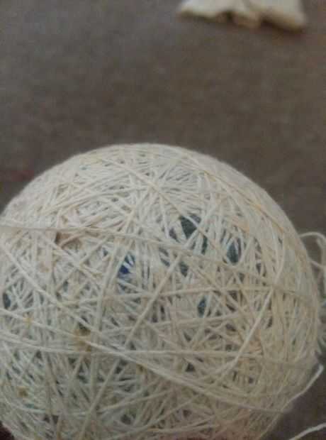 La siguiente capa era algodón, presumiblemente, no totalmente seguro de ser honesto pero era blanco y dudo que están dispuestos a ir blanqueo de lana para el interior de una pelota de béisbol; Puedo equivocarme. Este "hilo" era realmente más como un hilo fino de hilo y fácilmente podría ser roto con casi ningún esfuerzo, créeme! Rompió su propio acuerdo de al menos dos veces mientras yo estaba enrollado. Esa última vez, simplemente para fastidiar a mí, estoy seguro de ello!