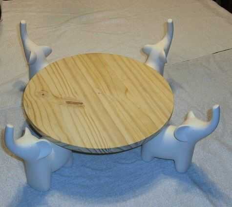 Esto sólo iba a ser un plato sencillo. Los cuatro elefantes iban a estar en un grande y redondo plato soporte plato de otro, más pequeño en la espalda (ver foto segunda y tercera).