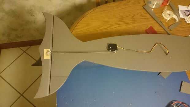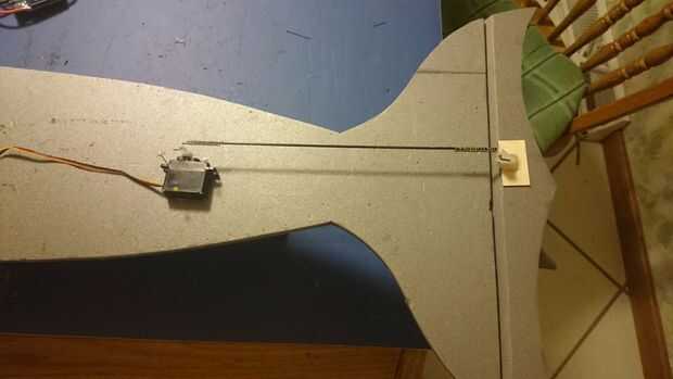 5. Utilizar resina de 5 minutos para pegar el servo del elevador en la parte inferior de la cubierta.