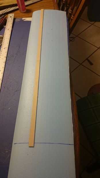 - Entonces medida desde el borde de 1.5 y 2 pulgadas y trace una línea a través del ala. Esto marca la ubicación de la cut outs para los largueros del ala.