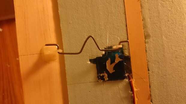 4. Doblar la varilla de empuje como se muestra en la tercera foto. El zig-zag en el centro permite que la longitud de la varilla de empuje para ajustarse finamente.