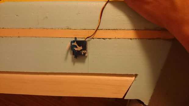 • Nota Si está utilizando varillas de alambre como hice los servos debe ser colocado perpendicularmente a la línea de bisagra. Esto minimiza la carga de lado en el cuerno del servo y el control.