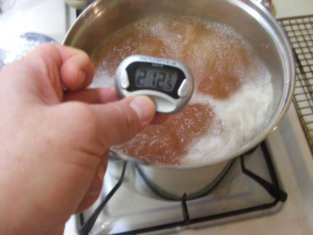 1 mediana (3-4 cuartos de galón), cacerola pesada fondo para cocinar la jalea