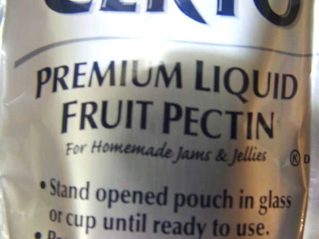 Así, a partir de 6 tazas de la mezcla de jugo (punto de ebullición anterior de 217F), siguió las instrucciones de la receta incluidas en el paquete de la pectina.