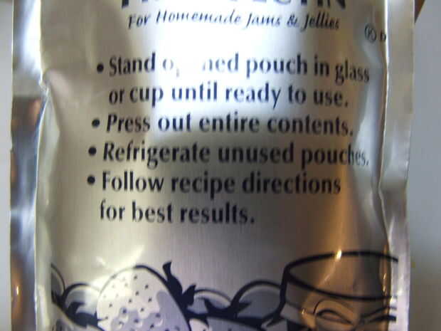 (algunas recetas sobre este paquete tienen una nota acerca de la configuración: ("Puede tomar 1 semana para establecer": gelatinas de uva y ají picante, o "quizás transcurran 2 semanas para establecer:" mermelada de albaricoque y mermelada de naranja) Hmm... nada de caquis aquí.  Tal vez