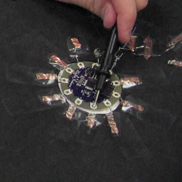 - Hacer lo mismo con las líneas positivas (debe ser menos de ellos) a la conexión positiva entre el Lilypad y el condensador. Cada conexión de prueba a su vez e investigar/resolver problemas.