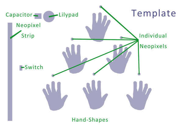 Diseñé la Junta para que se jugó por alguien sentado antes de él, pero como verás en el video adjunto, mayoría de la gente que jugó lo hizo así de pie y que se cierne sobre la parte superior. De cualquier manera, mi diseño una colocación radial de las formas de mano para evitar que dentro de todo bastante fácil llegar. Teóricamente podría ser espaciadas hacia fuera en un patrón diferente. Si se usó un tablero más grande que el Arduino Lilypad, más formas de mano podrían ser programados y utilizado así, que requiere un aumento en la cinta de cobre, aluminio, Neopixels individuales y otros suministros según corresponda.