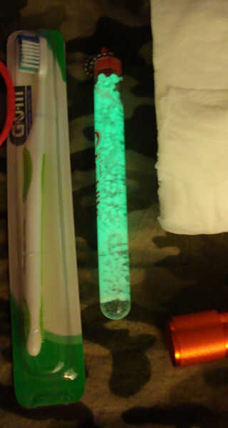 Palillo del resplandor - esto es una versión recargable y no brillan tan brillante como la reacción química más. PERO todo lo que tengo que hacer mi LED arriba y abajo del cuerpo y los 'granos' en recarga y brillo durante varias horas.