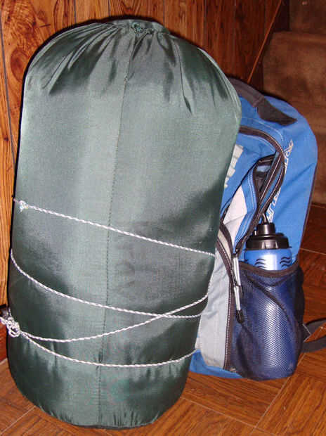 Llevar saco de dormir en mi coche. Si yo estuviera obligado a abandonar mi coche, yo usaría (amortiguador auxiliar o para...) cuerdas para atar a mi bolsa de 72 horas, aunque no fue diseñado para él. Me can.carry el peso. Esto me ayudará en la noche cuando las temperaturas descienden. Peso vs calor. Ganar comodidad y calor.