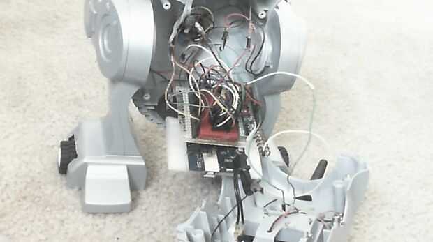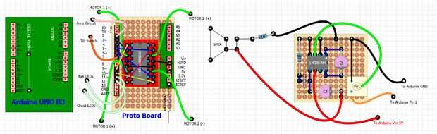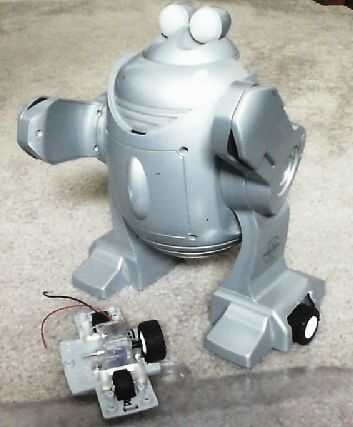 se basa en una imagen más elegante retro robot llamado el Robo Cub que me dieron por un dólar en un mercado de pulgas. El mando a distancia era de una caja de basura en el mercado de pulgas y fue lanzado gratis. Ha sido adaptado con y la arquitectura Arduino UNO R3 utilizando un controlador de Motor de puente de H y Menta-Mote para su operación.