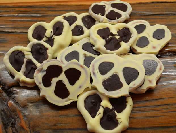 estas delicias son pretzels de chocolate con glaseado de chocolate cubierto con caramelo de menta machacada. Hacen gran fiesta regalos puesto que se ven muy bien, mantienen durante mucho tiempo y bien de la nave. Y tendrás un montón de diversión con