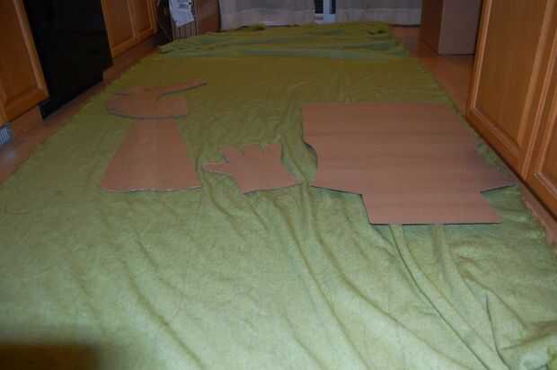 He utilizado las plantillas de cartón para trazar los patrones sobre la tela de la piel... minimizando la cantidad de costuras, que sentido en el paso siguiente. Hice mi mejor esfuerzo para cortar con cuidado las formas tratando de planear las tijeras a través de la piel y no corte nada de eso. Yo diría que tenía una tasa de éxito del 85%, pero hubo algunas muertes como se puede ver en la última foto.