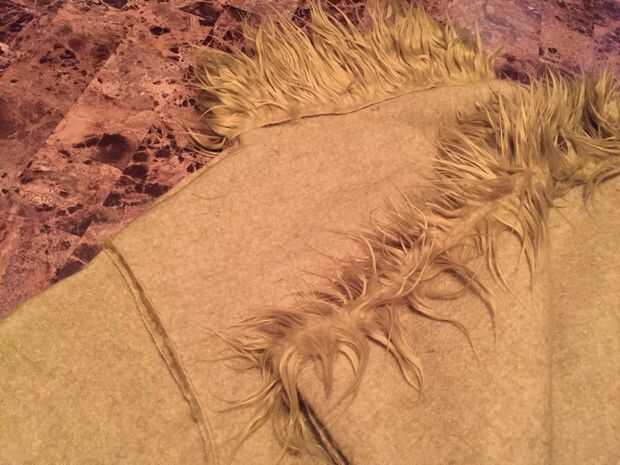 Hemming... era otro dilema. En vez de poner puntadas visibles aunque la piel exterior, decidí usar pegamento caliente... y funciona muy bien. ¿Que necesito? Tal vez no, pero me preocupaba la malla de la piel puede romper si no lo hacía.