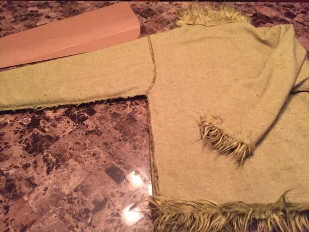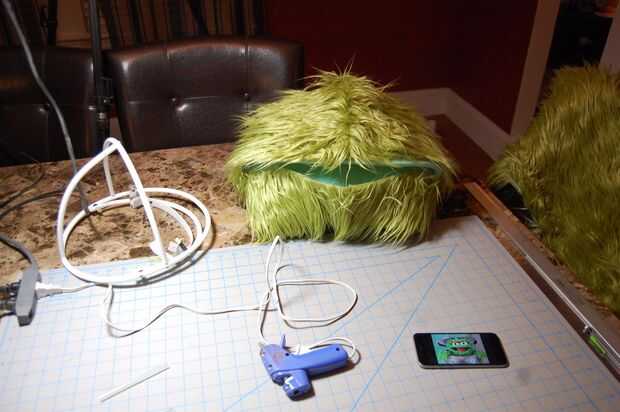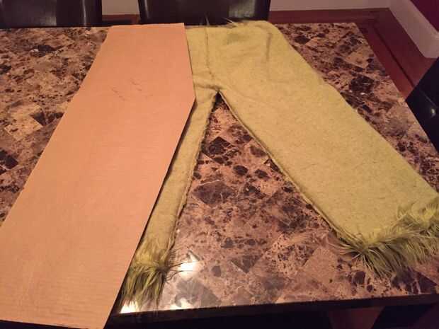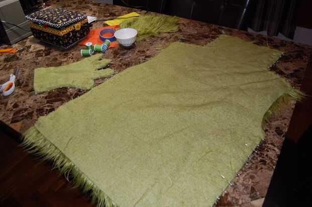 La cabeza era un reto, pero he seguido la misma fórmula que utiliza con la espuma y funcionó hacia fuera. La cabeza de tela deslizó sobre la cabeza de la espuma de la misma manera como una funda de almohada... una funda de almohada furry.