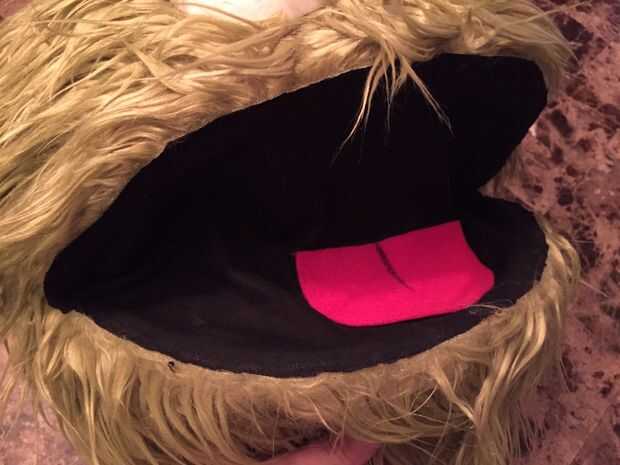 Para la boca, usé un ver a través de la tela negra. No tengo ni idea de donde proviene, pero estoy acabando... por favor ayuda. La lengua fue hecha de fieltro rojo... escala al tamaño y corte con unas tijeras.