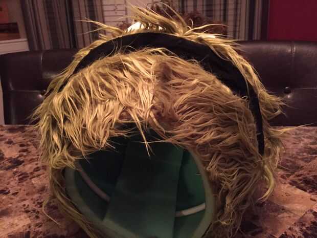 Ceja de Oscar fue hecha de un corte pelo verde... aerosol pintado marrón en varias etapas. Te recomiendo capas ligeras... cuanto más mejor o conseguir glopping como yo lo hice.