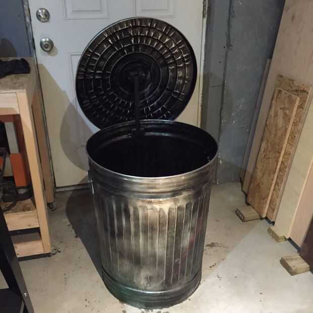 Oscar necesita un bote de basura... y no puedo montar en un bote de basura estos días. Primera orden del día era cortar la parte inferior de un contenedor de basura. Ya que también quería ser capaz de caminar con este cubo de basura, decidí asegurar que dejé algunas fichas para colgar.