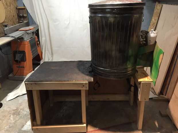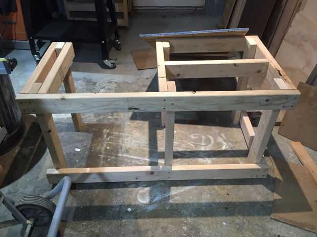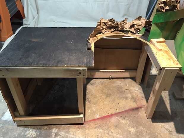 La etapa fue construida usando el recorte de 2 x 4 en mi tienda y todo es atornillada por lo que se pueden desmontar y reutilizar. La parte superior fue forrada con OSB para la fuerza y todas las superficies verticales se forraron con cartulina. El lado izquierdo se corta abierto por lo que aguanto y mis piernas se esconden.
