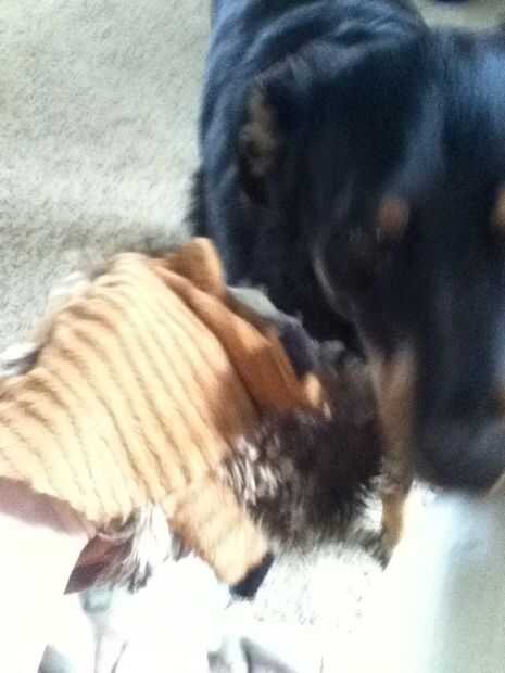 perro de mi madre, Molly, le encanta jugar - una actividad que para ella implica generalmente redondeando todos sus juguetes y rasgar en pedazos. En un esfuerzo para hacer algún tipo de juguete indestructible, o al menos algo que ella podía jugar con