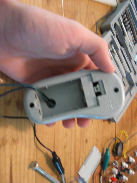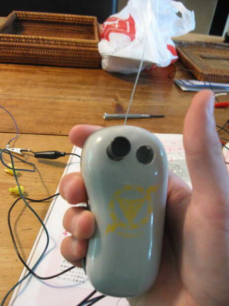 Perforó un agujero en la parte posterior de mi mando a distancia, aprieta un botón y conectado al cocodrilo separada dos