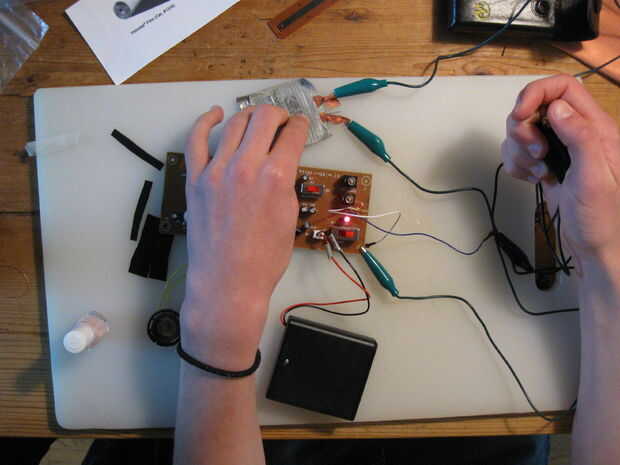 Tome los cables de la pinza de cocodrilo y conectar así: