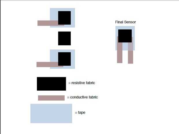 Montar el sensor táctil para el dedo índice. Esto puede ser montado por cortar tres cuadrados pequeños (aproximadamente del tamaño de la punta de su dedo) de la tela resistente y luego cortar dos pequeñas tiras de tela conductora. A continuación, cortar dos tiras de cinta, un poco más grande que los pedazos de tela resistente. Coloque una tira de tela conductora al final de una resistente tela cuadrada, hacer esto con la otra tira. Coloque un pedazo de cinta adhesiva sobre cada tira de tela conductiva y resistente tela. Con el pedazo restante de tela resistente colocarlo en medio de las dos partes ensambladas para que te quedan con un sensor completo listo para ser colocado en el guante.  Nota: Las tiras de tela conductora no deben estar tocando.