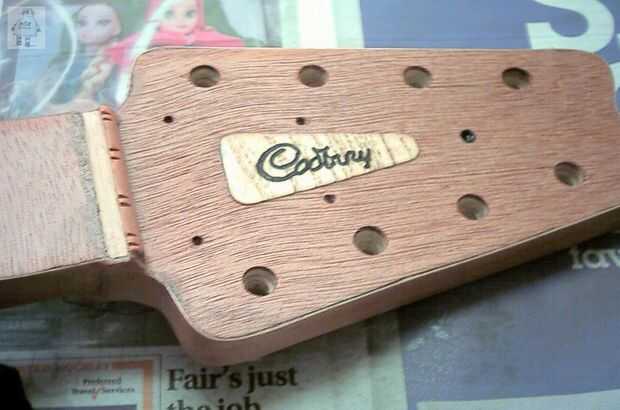 Usé mancha de Rustin de madera (pino) para poner un poco de color en las tiras de chapa de abedul y madera contrachapada. Limpie en con un paño y deje secar. También mancharon la tuerca de pasador, pero no el área del diapasón.