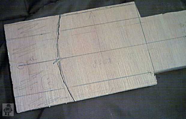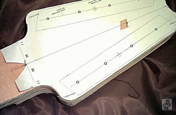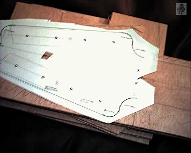 El cuello y la cabeza está hecha de una pila de laminado de piezas de contrachapado de 6mm. Se suministra una plantilla para la forma de la cabeza pero el resto está marcado directamente en la pieza superior de madera, incluyendo un final "redondeado" para que coincida con el interior de radio de la lata (cuerpo).