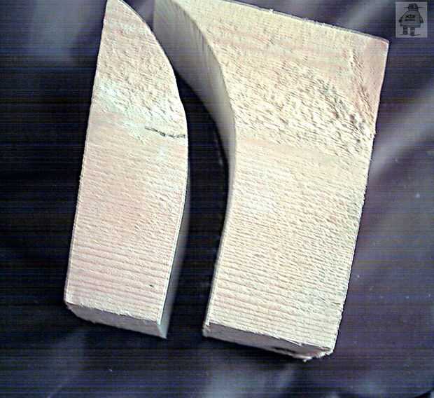 Un bloque de talón se corta de madera pino, ligeramente más delgado que el ancho de cuello. Vaya otra vez Sierra y arena suave.