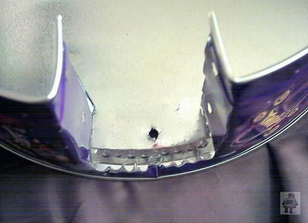 Otros dos agujeros se necesitan, uno en la cola y una por debajo en el talón de bloque, que colocará el cuello en la lata más adelante. Otra vez estos necesitan borrar un tornillo No 8.