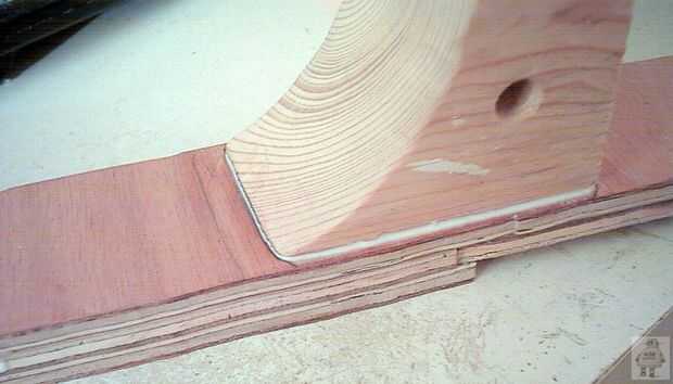 Pegué unos paneles de "chapa" (desecho la madera contrachapada, corte a través del núcleo central) hacia los lados y la base del bloque de pino desagradable traer hasta grueso y que se vea más bonito. La arena suave después de las esquinas.