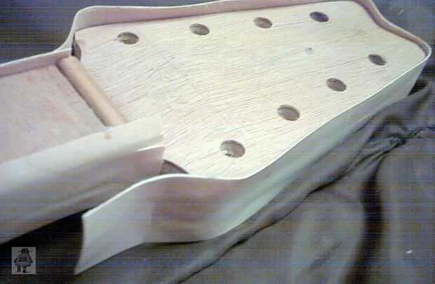 Yo también arrasaron algunos tira de chapa de sobra hasta el bloque de talón. Vapor, las tiras para conseguir una curva en ella para que no se resistirá. Recortar y lijar los bordes.