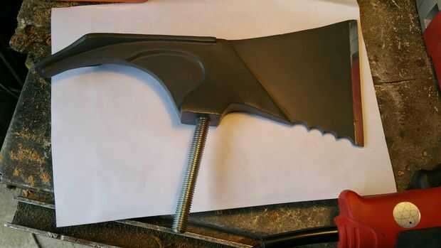 porque no un hacha cual puede existir en principio, causa que el mango de madera debe ir dentro de un agujero de la cuchilla, ésta no se hace así, y mirando más cerca en la foto podemos ver tjat el hacha en el cine como un enlace a lo largo de la manija, se debe hacer con dos piezas de platic!