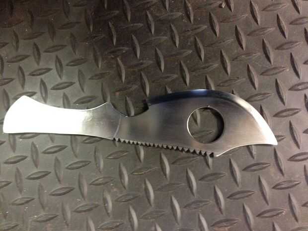 -Coloque la navaja en un tornillo de banco y molido y arena la hoja en forma deseada. Usé varias herramientas a la forma de la hoja lijadora, amoladora y archivo. No poner la hoja delgada o el metal comenzará a doblar sobre sí mismo.