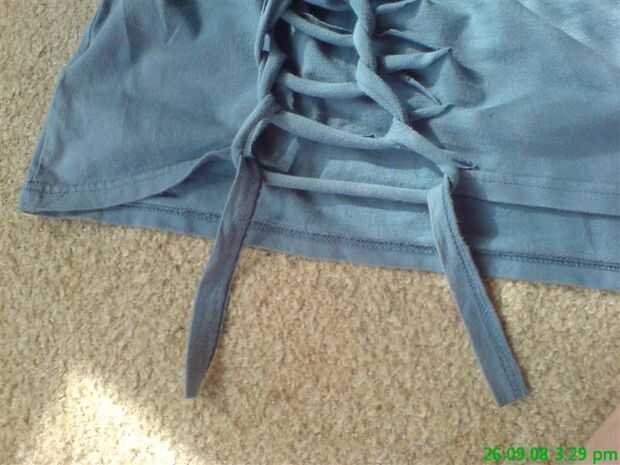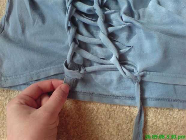 Separe las mitades cortadas de la correa pasada por el lazo del pasado, como en Ilustración2 y nudo apagado en las esquinas (pic3).