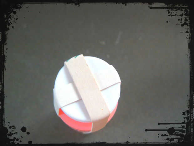 - Colocar 1 banda de caucho en la parte superior de la tapa que va hacia los lados