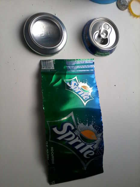 En la parte inferior de la lata, cortar el saliente tha de la parte se ve como un anillo. Tijeras de metal yo solía cortar el perímetro exterior del anillo, luego se corta el interior para obtener un anillo hueco. Dibujar un esquema de mockingjay, o encontrar uno en internet e imprimirlo. Asegúrese de que se trata del mismo tamaño que el anillo, con la cola y los extremos colgando sobre el borde ligeramente. Traslado a la hoja de aluminio (de la lata de soda) colocando la imagen en la hoja y trazado sobre el contorno con un lápiz o pluma. Debería ver el esquema levantado sobre el aluminio. Luego cortar la forma. Me pareció más fácil de usar tijeras porque el aluminio es tan delgado. Entonces usted puede cortar las piezas para la flecha.