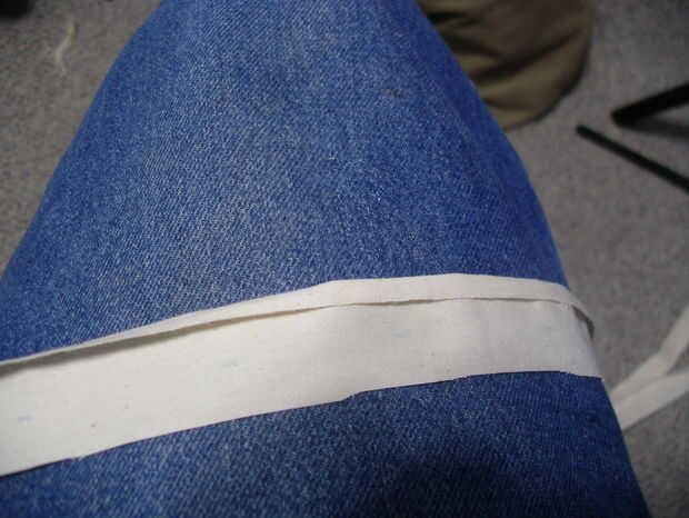 Para la cabeza y del pie medida 1/4 de pulgada y corte el sobrante. Cuando se despliegan las costuras falsas el canto del material de corte será irregular. Sólo hacia el centro del exceso y trazar una línea recta, manteniendo el tejido de la tela pasando la misma dirección como la vela. En esta línea de hacer una tira de 1 y 1/2 pulgadas de ancho con una pulgada extra de 1/4 a cada lado para doblar bajo como un dobladillo.