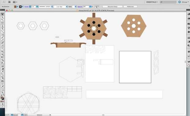 Mis trabajos de diseño para el Hexachord anterior era sobre todo bocetos de mano para éste había modelado todo en Illustrator y me alojé en su mayoría fieles al plan, aunque hubo otra vez algunos retoques involucrados. Tener la versión vector muy amable cuando necesitaba hacer doce piezas cuello idénticos.