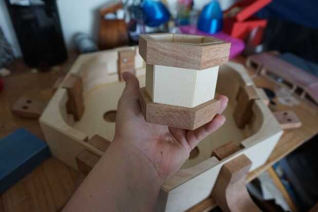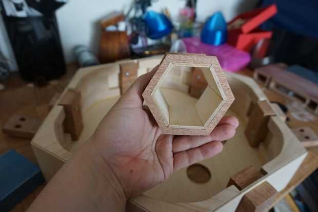 Después se reunieron las paredes internas, yo pegado a la hexagonal en el centro de la cara, usando una pila de libros para mantener en su lugar.